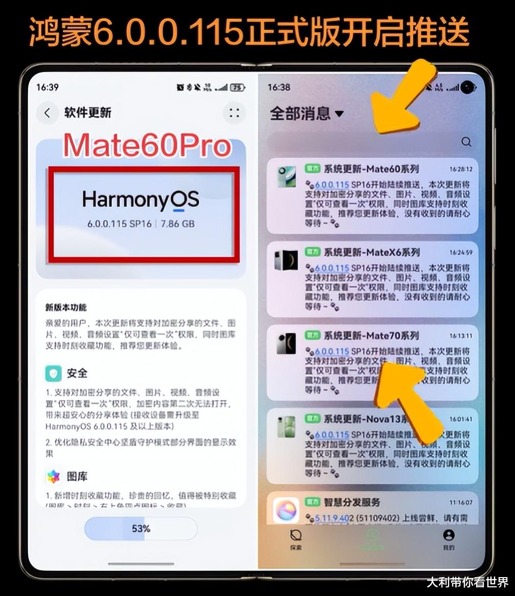 这种怀疑其实是比较正常的,过去几年大家被教育得明明白白,新系统是新机器的专属待遇,老设备能收到推送就已经很不错了,至于体验,那就得看运气了,而华为这次直接把正式版推送给Mate60到Mate70、Pura70到Pura80、整个nova12系列,连测试版都不经过,就这么直接推送过来了。